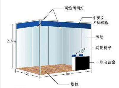 ■标准展位费用包括:展出场地、2.5m高壁板、楣牌制作、9平方米地毯、洽谈桌一张、椅子二把、10A/220V